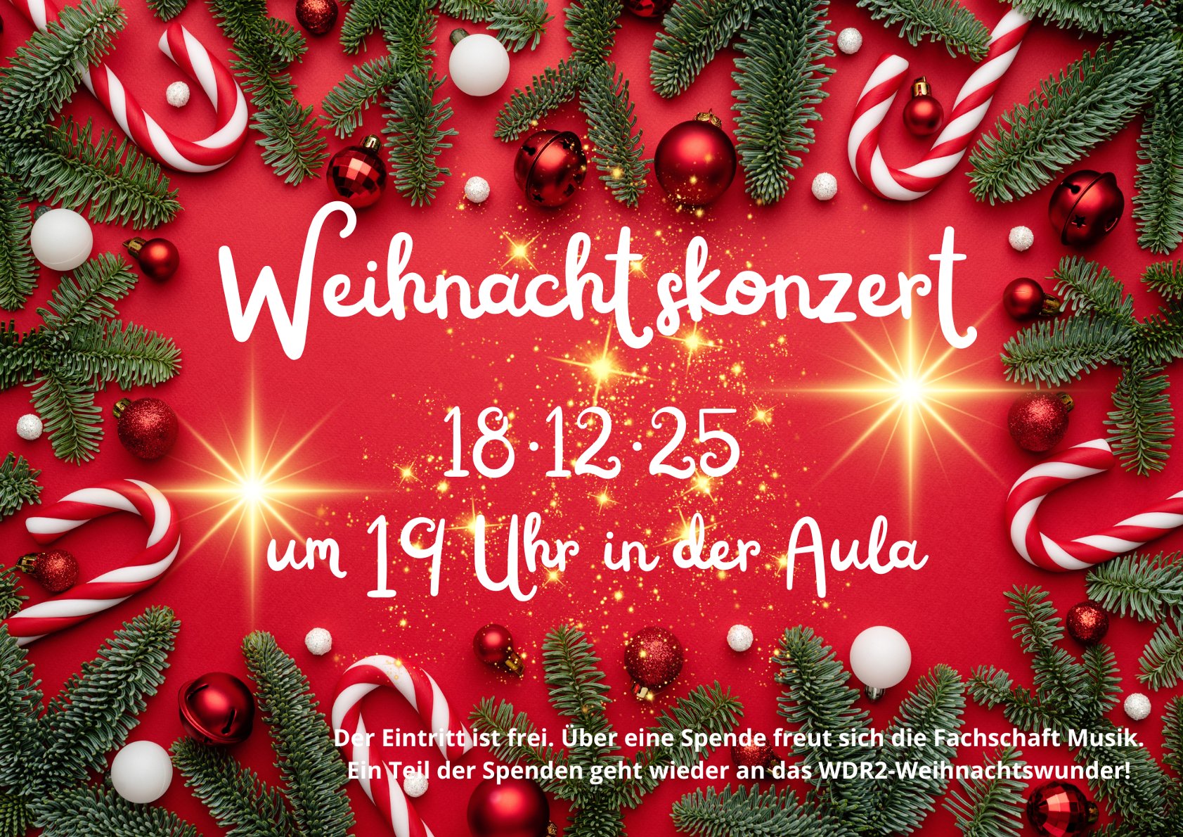 Am 18.12.25 um 19 Uhr verwandelt sich unsere Aula wieder in einen festlichen Konzertsaal, gefüllt mit Musik, Licht und weihnachtlicher Atmosphäre.