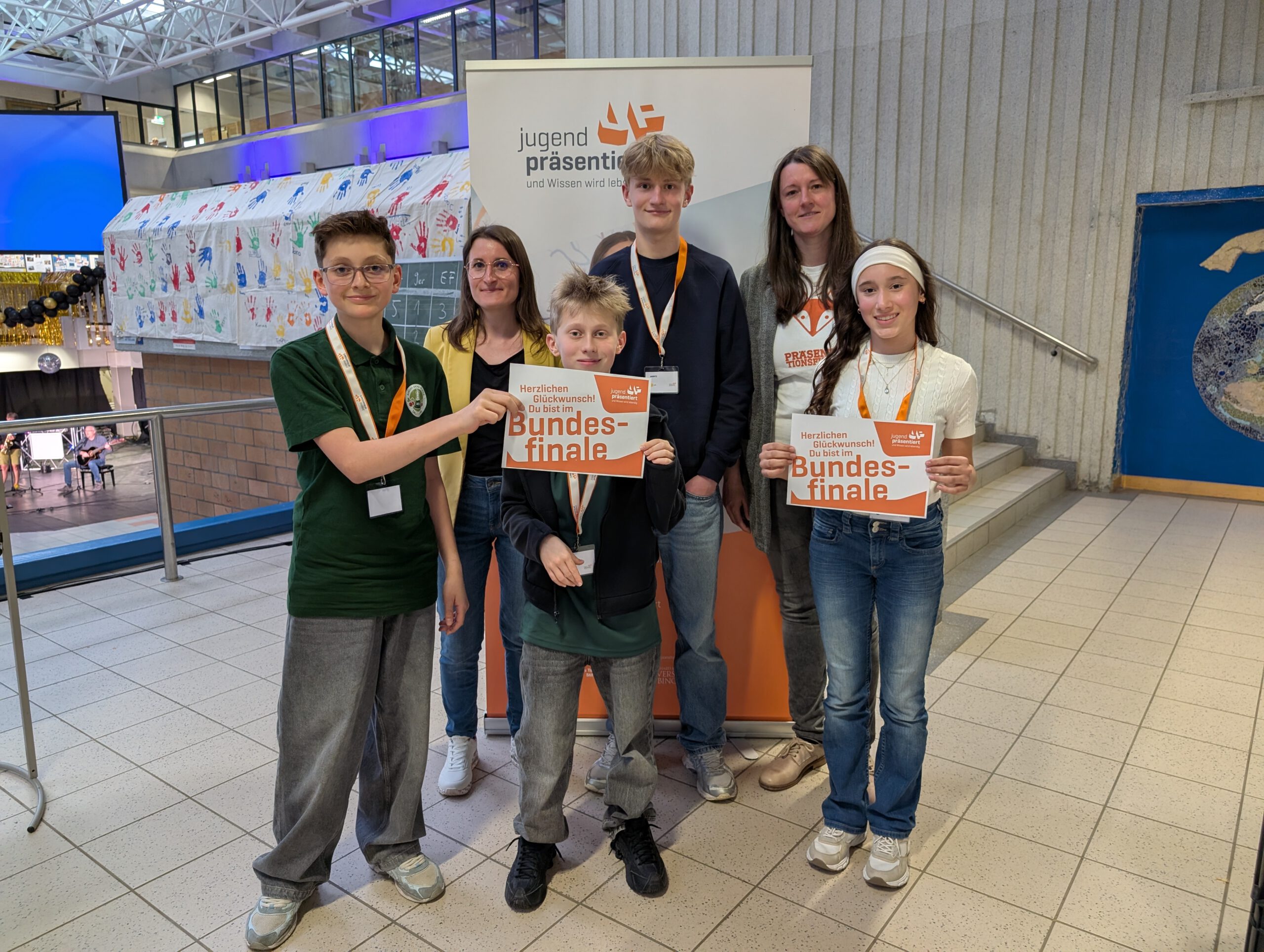 Die Sensation gelang: Lucian, Nick und Matilda überzeugten die Jury mit ihren großartigen Präsentationen, so dass sie den Einzug in das Bundesfinale, welches in Berlin stattfinden wird, geschafft haben!!!
