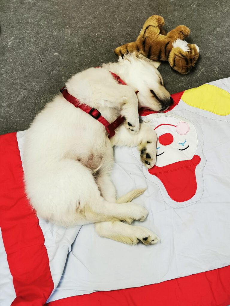Auch im Hundebüro fühlen sich Willi und Cookie sehr wohl und nutzen es als Rückzugsort vor, nach und zwischen ihren Einsätzen. Der Schulgarten, Schulhof und Sportplatz dienen ebenfalls als Spiel- und Trainingsort.